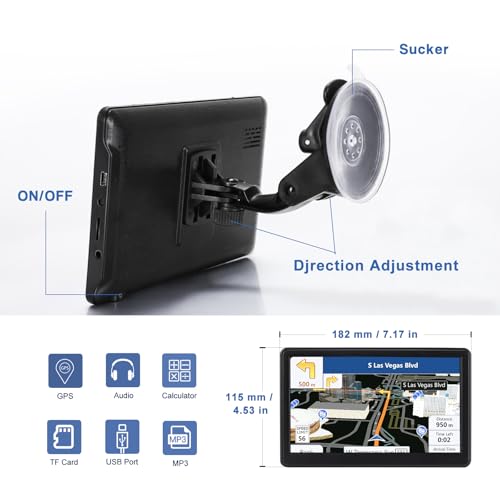 Specification: GPS Navigator for Car Truck RV, Latest 2025 Map, 7 inch Touch Screen Real Voice Spoken Turn-by-Turn Direction Reminding Navigation System for Cars, Vehicle GPS with Speed and Red Light Warning