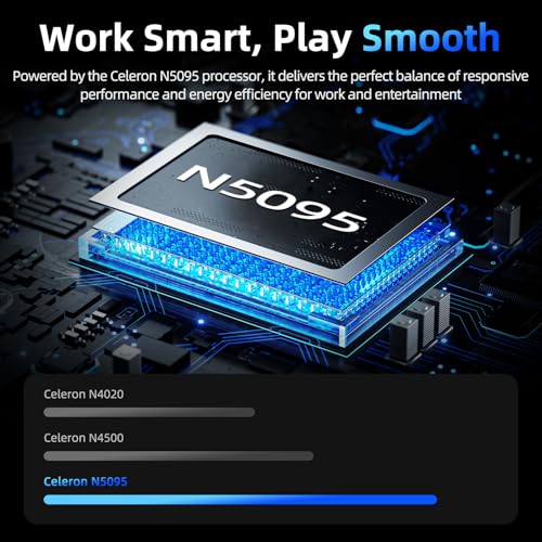Powerful Processing Performance: This windows laptop features the Celeron N5095 processor, built on a 10nm process with 4 cores and 4 threads, base frequency 1.1GHz and turbo up to 2.9GHz. With Windows 11 Pro, these laptops deliver reliable and stable system performance along with amazing loading and processing power, ensuring a smoother and more dependable PC experience
