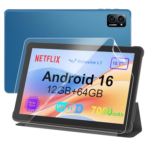 10 inch Android 16 Tablet: 12GB RAM 64GB, Octa-Core T606, 7000mAh with Stand Case, IPS HD Display, Wi-Fi 6, OTG, Metal Body – Fast & Portable Tablet for Work & Entertainment, 2-Year Protection