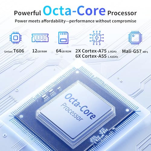 Optimized Performance with Android 16 and T606 Processor: Powered by the advanced T606 octa-core processor. With 12GB (4GB+8GB) RAM and 64GB expandable storage (up to 2TB), it delivers seamless browsing, smooth video streaming, and efficient multitasking. Running on Android 16, it ensures fast, reliable performance for all your essential tasks, whether you’re managing emails, productivity apps, or enjoying entertainment