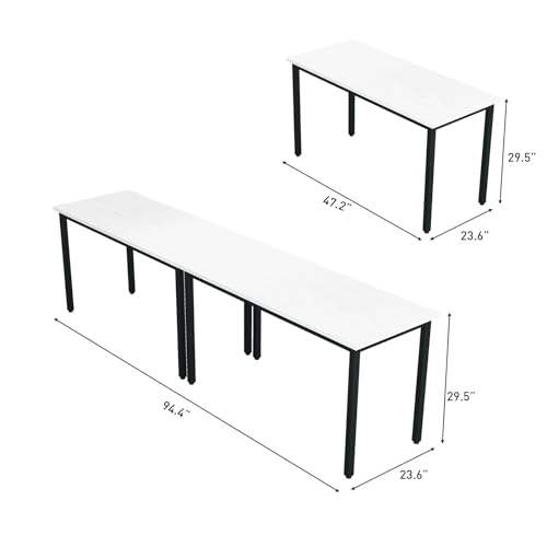 PERFECT SIZE: 2PCS conference table accommodates 4-8 people. Measuring 94.4″D x 23.6″W x 29.5″H. Dimension of each single computer desk is 47.2″ L x 23.6″ W x 29.5″ H for random combination. Stylish and Sleek design make these tables ideal for any office, conference room, meeting room and study room.