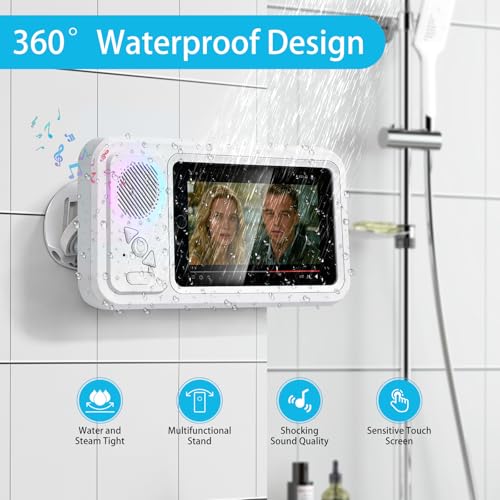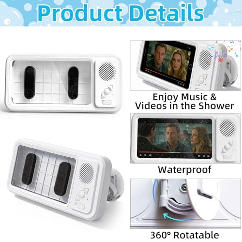 Specification: Shower Phone Holder with Bluetooth Speaker – Waterproof Wall-Mounted Shower Phone Case, Hands-Free Music Playback, Anti-Fog & Sensitive Touchscreen Case Stand for Phones Accessories Gift for Men Women