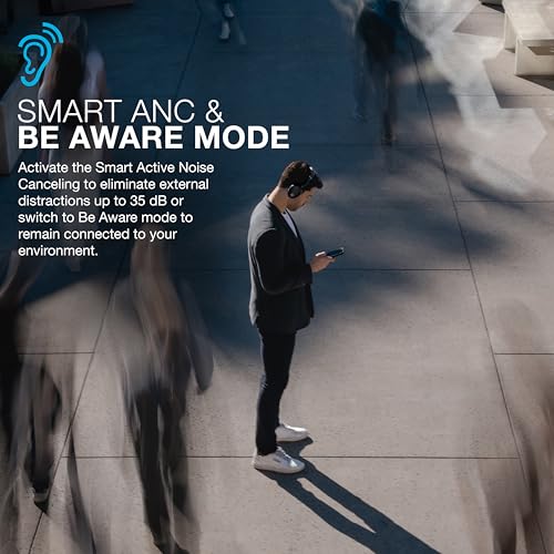 🧠🔇 SMART ANC AND BE AWARE MODE: Smart Active Noise Cancelation adjusts to the environment and continually learns how to best cancel noises, offering the best audio experience. Activate the Smart Active Noise Canceling to eliminate external distractions up to 35 dB or switch to Be Aware mode to remain connected to your environment.