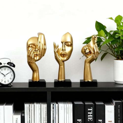 3 Pcs Thinker Statue,Modern Home Resin Sculptures,Collectible Figurines for Home Office Bookshelf Desktop Decor(Golden)