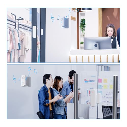 500 Ft Working Range: When a door or window is opened, the buzzer will instantly play the ringing alarm of your choice. Up to 500 feet of wireless connectivity in open areas, ideal for home front door, office or store.