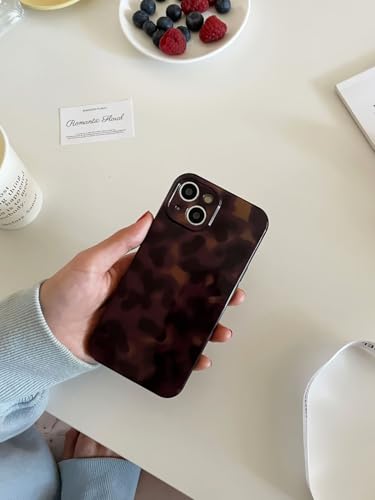 Aesthetic Tortoise Shell Phone Case for iPhone 14 6.1in,Retro Cool Girl Leopard Print Brown Amber Trendy Full Camera Protective Cover for iPhone 14 6.1″